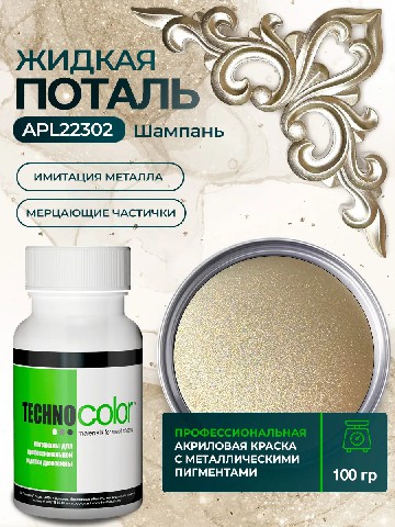 Металлизированная краска на основе растворителя, которая с большим успехом заменяет золочение, имитирует сусальное покрытие с эффектом перламутрового блеска и при этом существенно уменьшает стоимость декоративных работ. Поталь помогает создать имитацию золота и серебра различных оттенков. Используется для декорирования различных изделий из дерева, металла, ППУ, стекла и других материалов.Свойства: