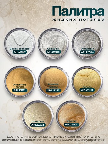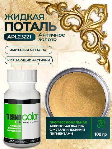 Жидкая поталь APL23221 Желтое золото – это профессиональная высоко пигментированная металлизированная краска для мебели, декора и творчества с роскошным блеском драгоценных металлов.Погрузитесь в мир безграничных возможностей с нашей уникальной жидкой поталью! Эта акриловая краска с золотистыми металлическими пигментами — ваш идеальный помощник для создания выразительных декоративных эффектов металлик в различных техниках декора, творчества и художественного оформления, которые преобразят любой интерьер.