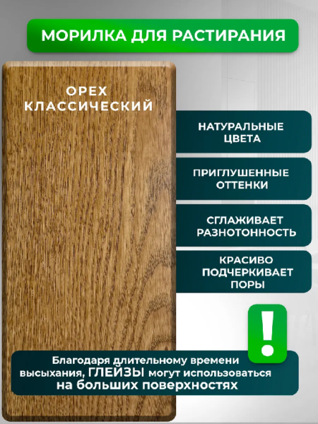 Глейз морилка для дерева профессиональный — это идеальное средство для тонирования древесины. Если вы стремитесь к натуральным, слегка приглушенным оттенкам, которые гармонично вписываются в любой стиль, то этот продукт — именно то, что вам нужно!Краситель позволяет добиться богатых и глубоких цветов, подчеркивая естественную текстуру дерева. Этот тонирующий состав прекрасно подходит для всех типов древесины. Он идеально подходит для массива и шпона, особенно для пород древесины с глубокими порами, таких как дуб и ясень, придавая им уникальный характер.