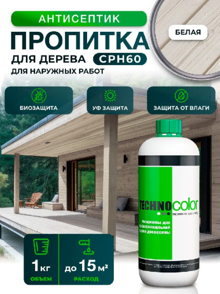 Пропитка белая CPH60 обеспечивает превосходную защиту древесины от негативных факторов окружающей среды, таких как перепады температур, влажность и насекомые, придает древесине великолепные декоративные свойства.Свойства: