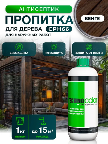 Пропитка венге CPH66 обеспечивает превосходную защиту древесины от негативных факторов окружающей среды, таких как перепады температур, влажность и насекомые, придает древесине великолепные декоративные свойства.Свойства: