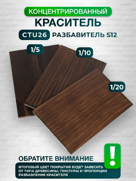 Обладают высокой прозрачностью (при нанесении сохраняют текстуру древесины), возможность получать при этом очень темные оттенки. Можно разбавлять их как органическими разбавителями, так и водой. Краситель CTU может быть использован для окраски по грунту (только при разведении растворителем) и для добавления в лак в пропорции 1-5% для получения большей однородности окрашиваемой поверхности.
