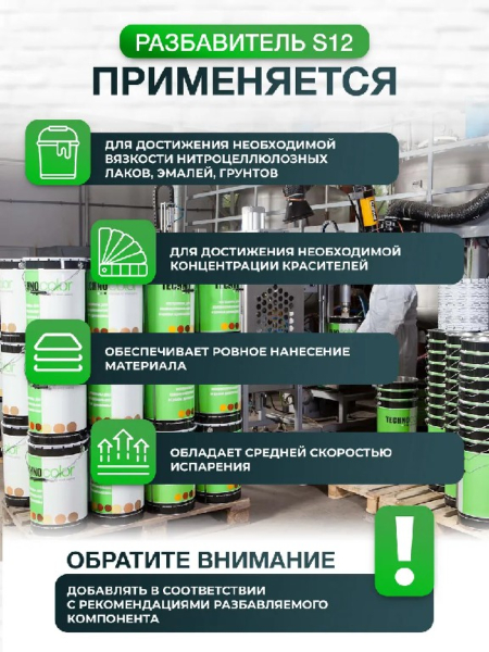 Разбавитель S12 характеризуется средней скоростью испарения.Область применения: