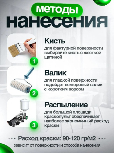 Для наилучшего результата рекомендуем наносить краску в 2-3 слоя кистью, валиком или распылителем.- Артикул: