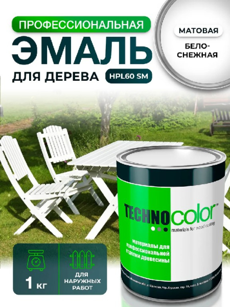 Профессиональная краска для наружных работ полуматовая (30 глосс) HPL60SM – Ваш идеальный выбор для заботы о деревянных поверхностях вне помещений!Преобразите внешний вид вашего загородного дома или дачи с помощью нашей профессиональной эмали TECHNOCOLOR! Специально разработанная для декоративной обработки и защиты деревянных изделий, эта краска идеально подходит для фасадов, уличных дверей и окон, террас, беседок, садовой мебели и заборов. Забудьте о беспокойстве по поводу воздействия солнечных лучей, дождя и ветра! Наша влагостойкая и устойчивая к атмосферным явлениям краска надежно скрывает мелкие дефекты, создавая прочное и долговечное финишное покрытие, которое защищает ваши деревянные изделия от механических повреждений, воды, пыли и грязи.